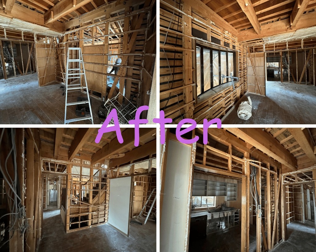 解体足場→内装解体→外壁石綿除去作業→家屋解体→外構撤去と解体工事もあと少しです。
